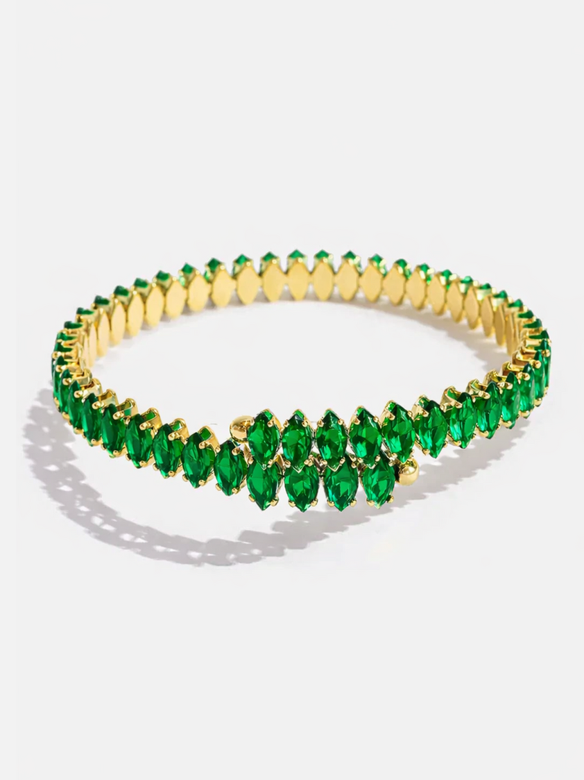 Add a touch of refined sophistication with the MOJAVE Emerald Gold Bracelet — a radiant statement piece designed to elevate every look with rich green brilliance and timeless golden shine.