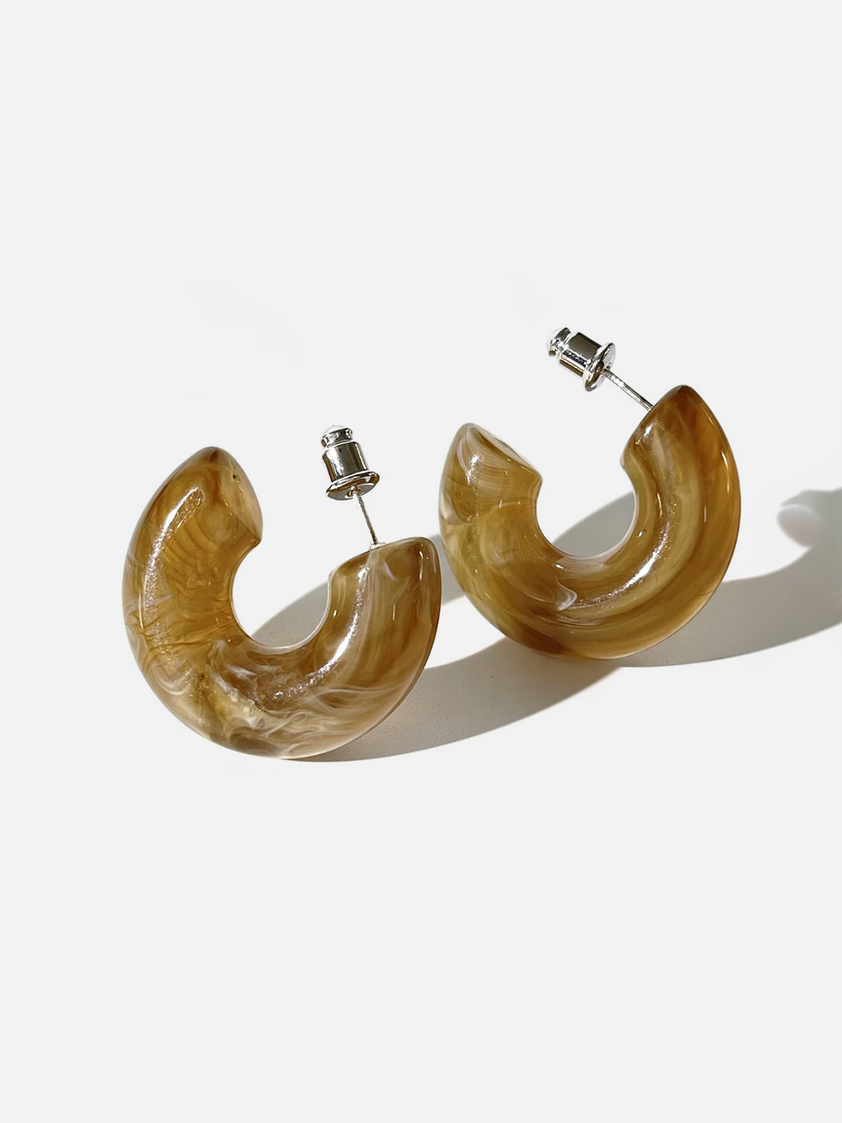 Cocoa Swirl Hoops blend rich chocolate tones and subtle caramel marbling into a glossy, light-catching silhouette.