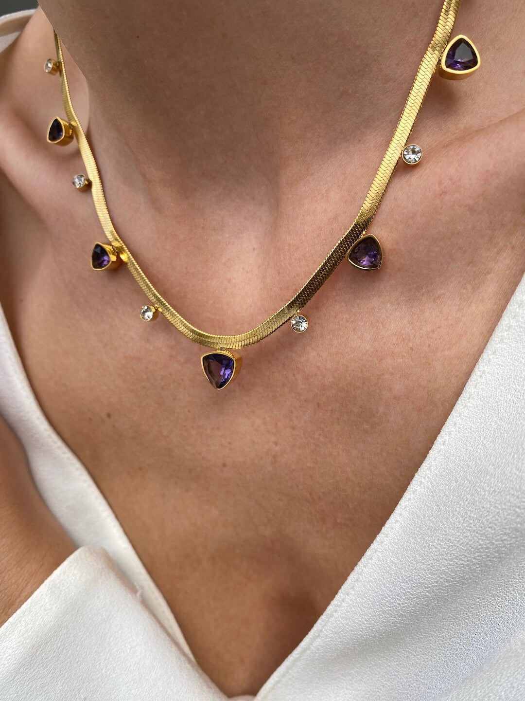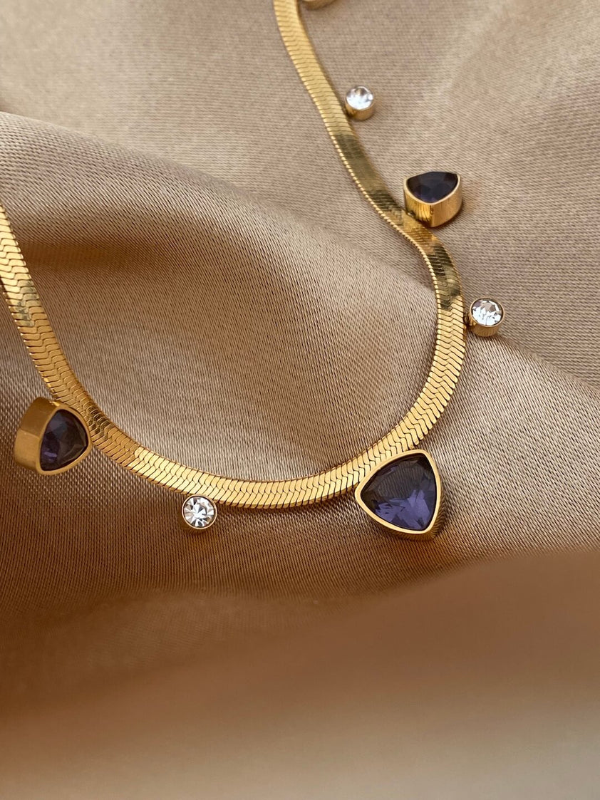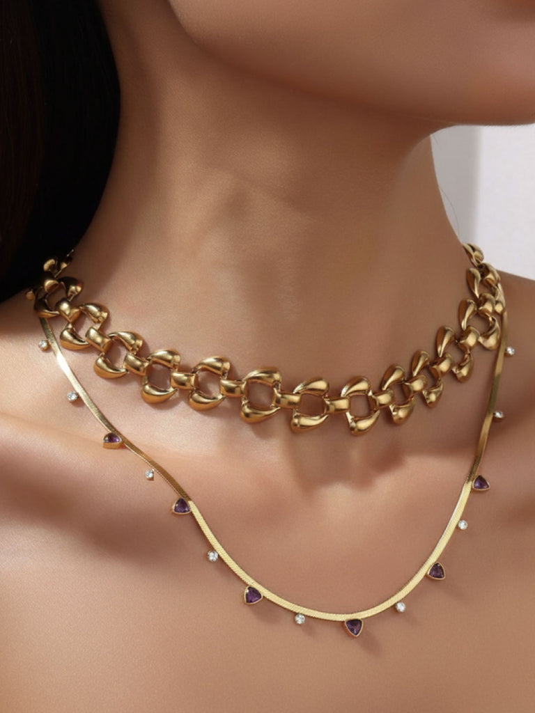 The Nefertite 2 Necklaces Set features a bold statement chain paired with a delicate, gem-accented necklace — designed to layer beautifully or shine individually. Inspired by regal femininity, this set captures effortless sophistication for both everyday wear and evening allure.
