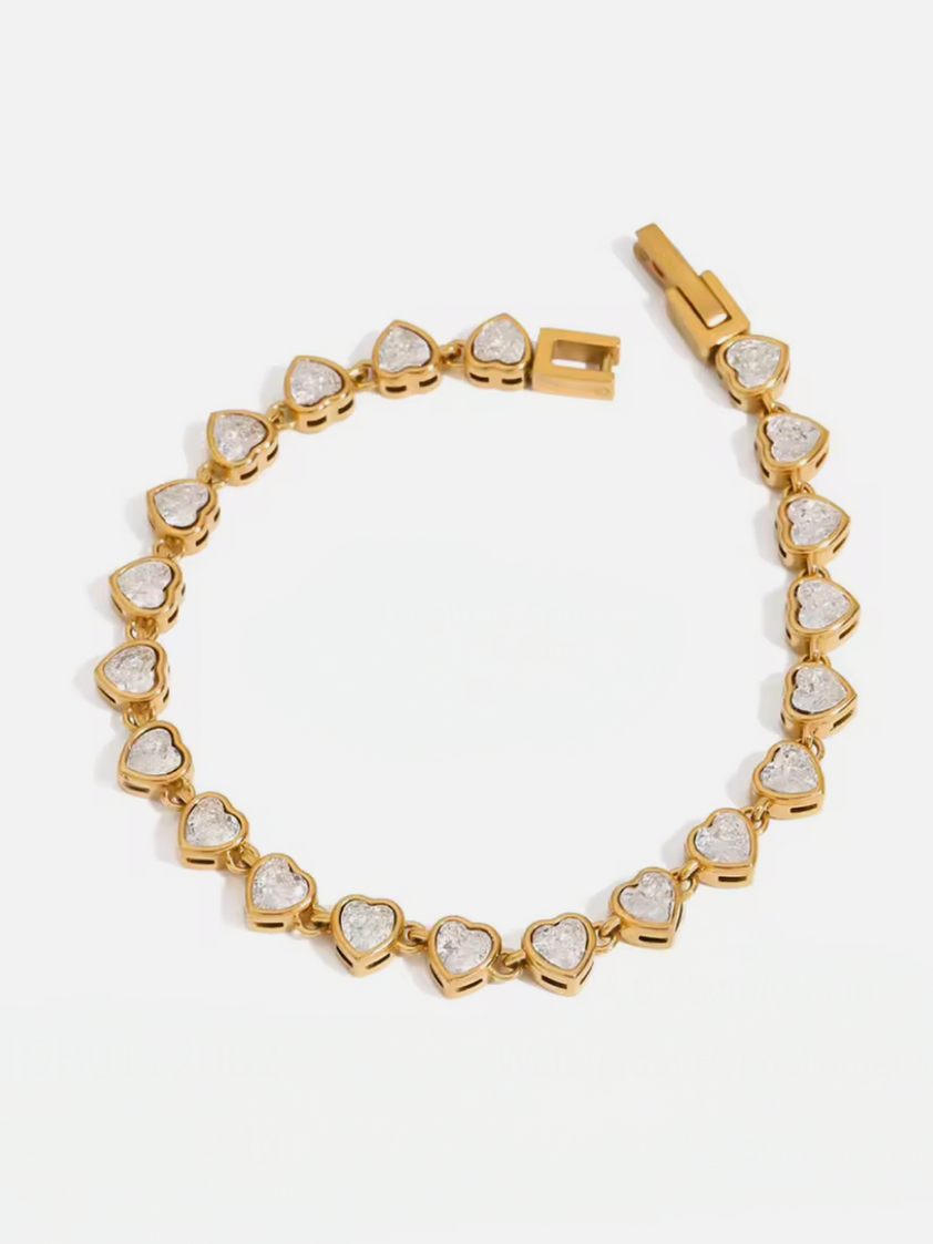 Amore Luxe Gold Tennis Bracelet - 17.5 cm / 6.88 in; Heart link width: 0.57 cm / 0.22 in